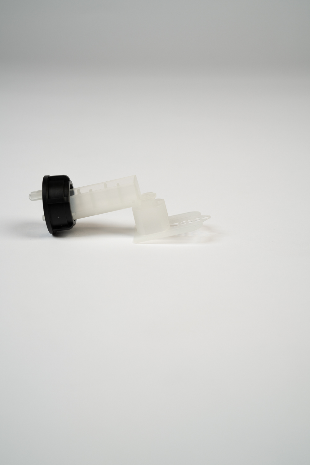 Der U-Docht saugt die Ameisensäure auf und leitet sie über den Schenkel auf das Vliestuch, wo sie abtropft verdunstet. Das gelochte Füsschen verhindert, dass sich die Dochte berühren, so bleibt der Säurefluss konstant. Die Verdunstungsfläche passt sich automatisch an Temperatur und Luftfeuchtigkeit an. Die Säuredämpfe verteilen sich gleichmässig in der Brutzarge und erreichen auch die verdeckelten Brutzellen.